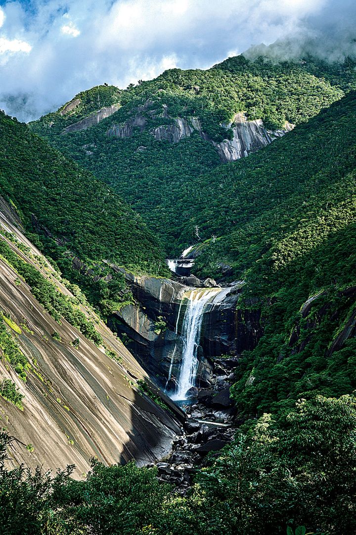 巨大な花崗岩のV字谷を落ちる落差約60mの滝。名前の由来は、 滝の左手に見えるむき出しの花崗岩の岩肌の幅広さを、1000人の人間が両手を広げてつながった(1人が両手を広げた長さが一尋〈ひろ〉)様子にたとえたことから。海底で冷えて固まったマグマが花崗岩の巨大な塊となり、地殻変動によって隆起したという、屋久島の成り立ちがよくわかります。
