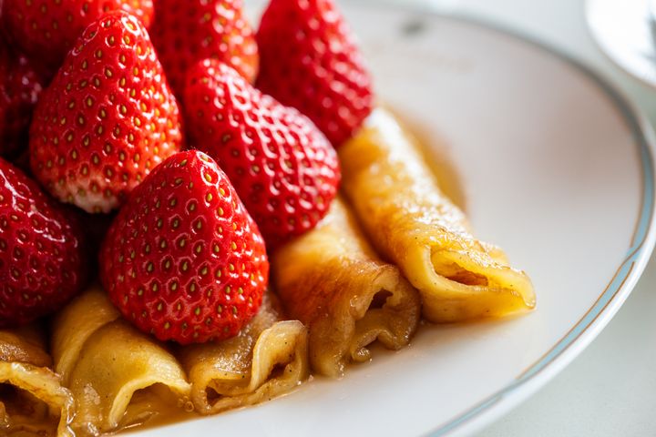 もっちりとした食感にコクのあるメイプルバター、そして時期によって厳選された甘酸っぱいいちごの組み合わせは極上です。