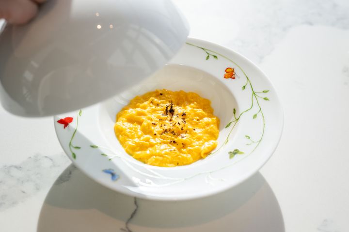 「トリュフの香りを閉じ込めたトロトロクリーミースクランブルエッグ」。