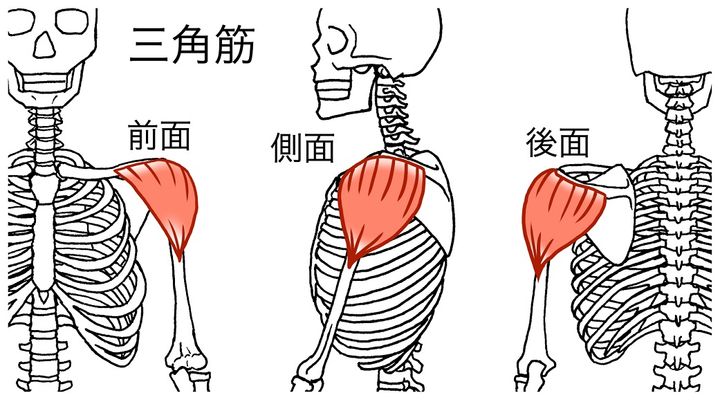三角筋は大きく3つの部位に分けられ、それぞれが異なる動作で主に使われます。