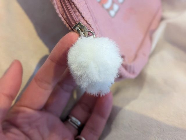 ファスナーにはふわふわのポンポン付き。