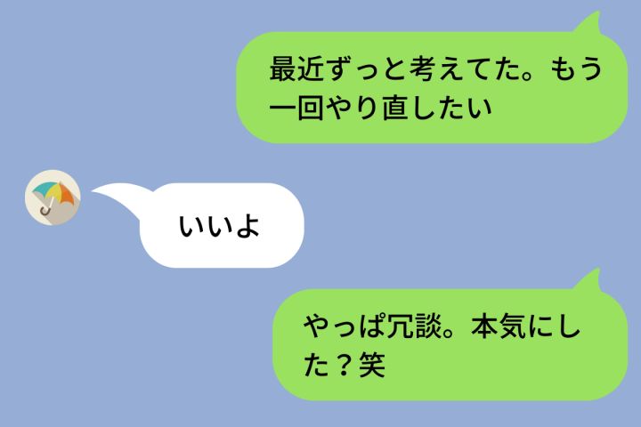 3. 「もう一回やり直したい」と送った復縁LINE→「いいよ」の返信に動揺して「やっぱ冗談」と逃げて後悔した話