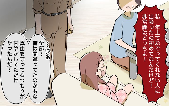 離婚して実家で暮らす真由は、生活のすべてを兄に頼りきっていた。しかし、そんな兄が突然7歳上の女性と結婚し、家を出ていくという。自分の生活が危ういと感じた真由は、結婚を阻止しようと婚約者に直談判。だが、逆に「兄を利用しているのはどっち?」と問われてしまい、イライラしながら店を出る。すると、支払いを終えた女性から「なぜ私が払うと思ってるの?」と指摘されて……。