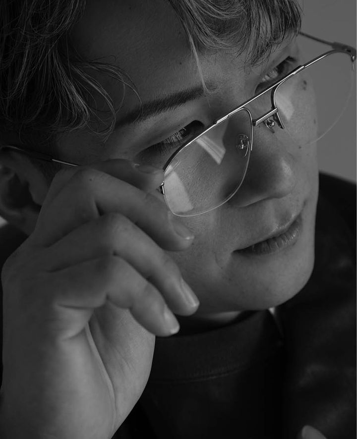 カメラでアップになるので肌荒れには気を付けています ニット¥25,300(NKNIT)、パンツ¥59,400(CCU)、ソックス¥3,850(パンセレラ/真下商事)、シューズ¥18,480(ハルタ)、眼鏡¥79,200(カトラー アンド グロス/ブリンク外苑前)