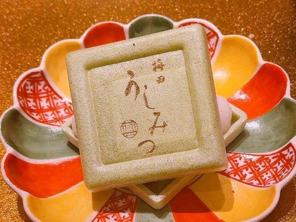 「うしみつ」のロゴ入りの最中には、ジャージー牛乳アイス、イチゴ、白玉を包んで。 練乳のやさしい甘さが、コースの余韻を穏やかに締めくくります。