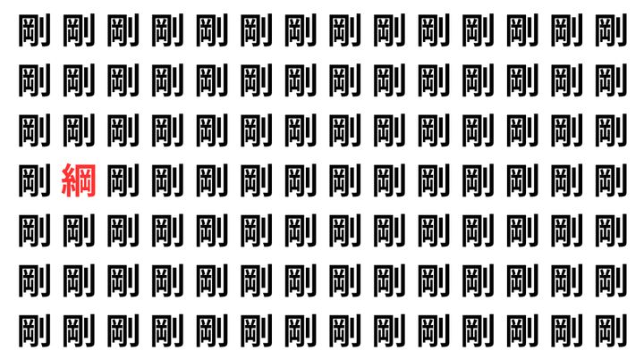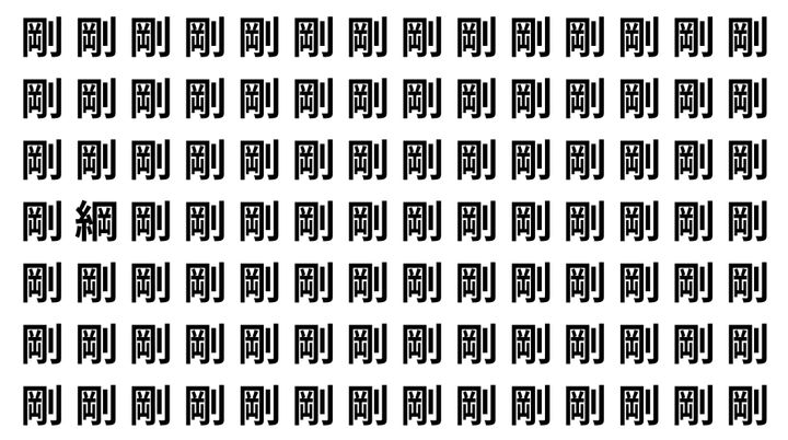 たくさんの「剛」の中に、よく似た別の漢字が1文字だけ隠れています。