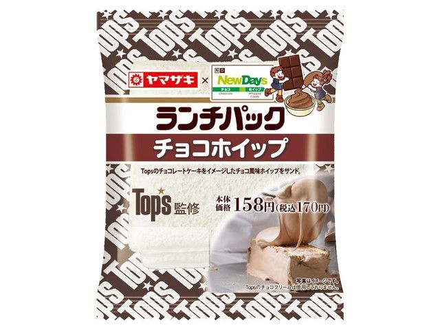 Topsのチョコレートケーキをイメージしたチョコ風味ホイップをサンド。 ニューデイズ 首都圏及び静岡・長野・新潟・宮城・福島・山形・岩手