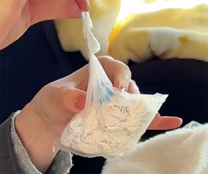 使い捨てできる『キッチンポリ袋 SSサイズ』を組み合わせて、開閉が簡単なゴミ用のポーチを作りました。