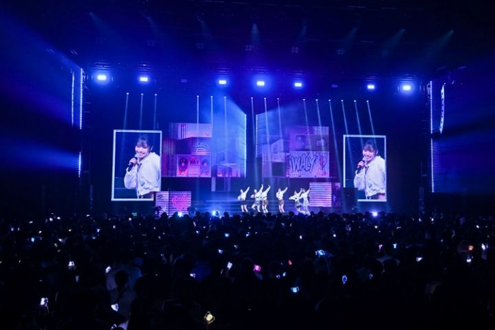 すると、1階客席の後方から左右にわかれて、メンバーがサプライズ登場!『Supercrush』を歌いながらも、nayaと精いっぱい関わろうとする、iznaのやさしさが垣間見えます。