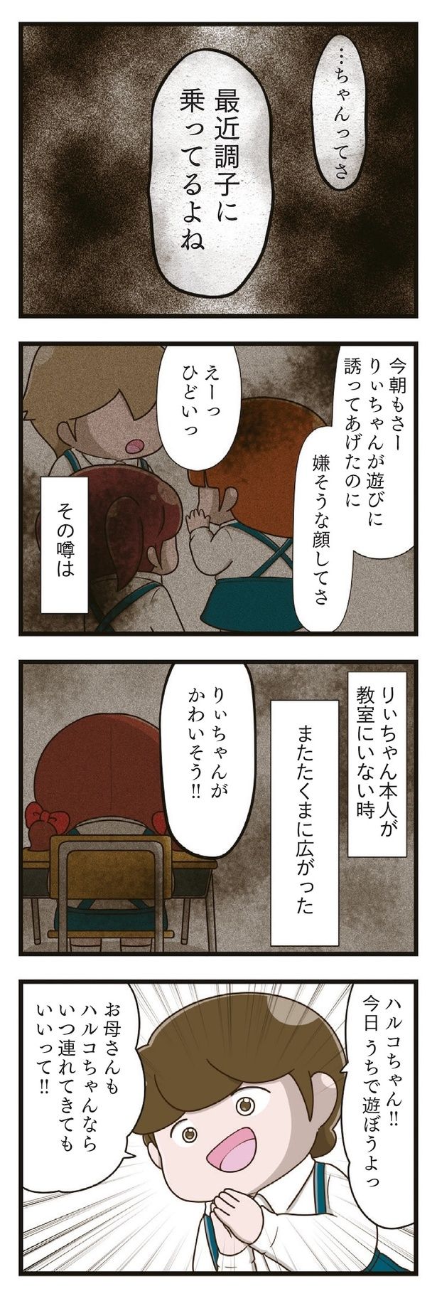 「お姉ちゃん学校でいじめられているんだって」息子の一言がきっかけで、母親は娘・ハルコの言動に違和感を抱くようになる。その結果分かったのは、ハルコが4年間、ひとりでいじめに耐えて隠し続けていたこと。いじめの本当の加害者は、被害者は誰? いじめと向き合う家族が希望を取り戻すまでの物語『家族全員でいじめと戦うということ。』を再連載でお届けします。いじめの原因になった同級生を描く新作『「お母さんの言うとおり」にしてきたのに 家族全員でいじめと戦うということ。 サキコの場合』も好評発売中です。