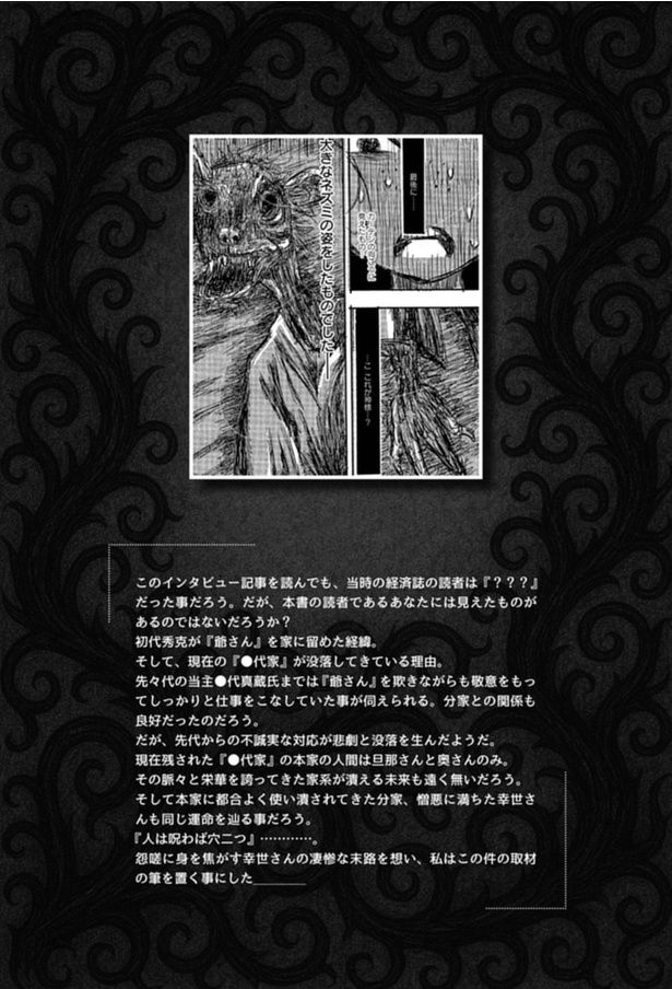漫画家・狐歪野(こわいの)ツッコさんの元には、全国から日々たくさんの画像が送られてくる。 それらの画像は見るからに奇妙で不気味なものから、一見何の変哲もないものまでさまざまだが、これらの画像には、ある共通点がある。それは、どれも恐ろしいエピソードを持った「怖い画像」であるということ。1枚の画像から始まる、不可解で奇妙な出来事…。あなたは、それらの一部始終を見届ける覚悟はあるだろうか――? 2024年3月から2025年7月にかけて、狐歪野さんの元に寄せられた恐怖の画像から選りすぐりの体験を漫画化した『この画像を見てください』にて、画像がもたらす新感覚ホラーをお楽しみください。