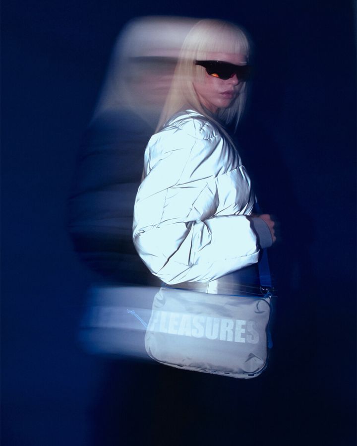 「TOPOLOGIE」を象徴するシルエットに、「PLEASURES」の挑発的なムードを重ねることで、旅の合間に流れる時間そのものをアイテムに昇華している。