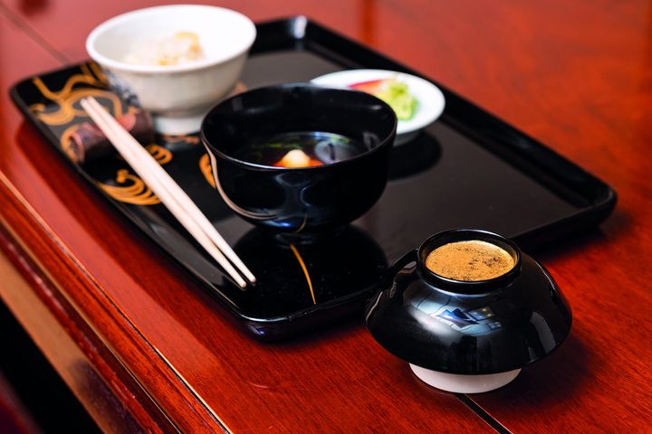 最後に出る椀もの。汁、飯、香の物。