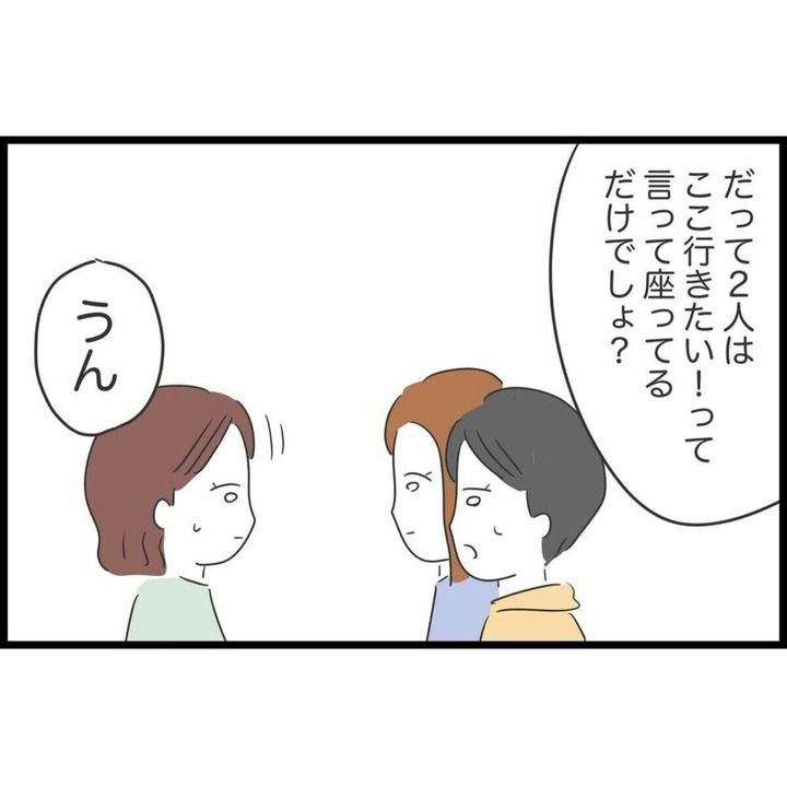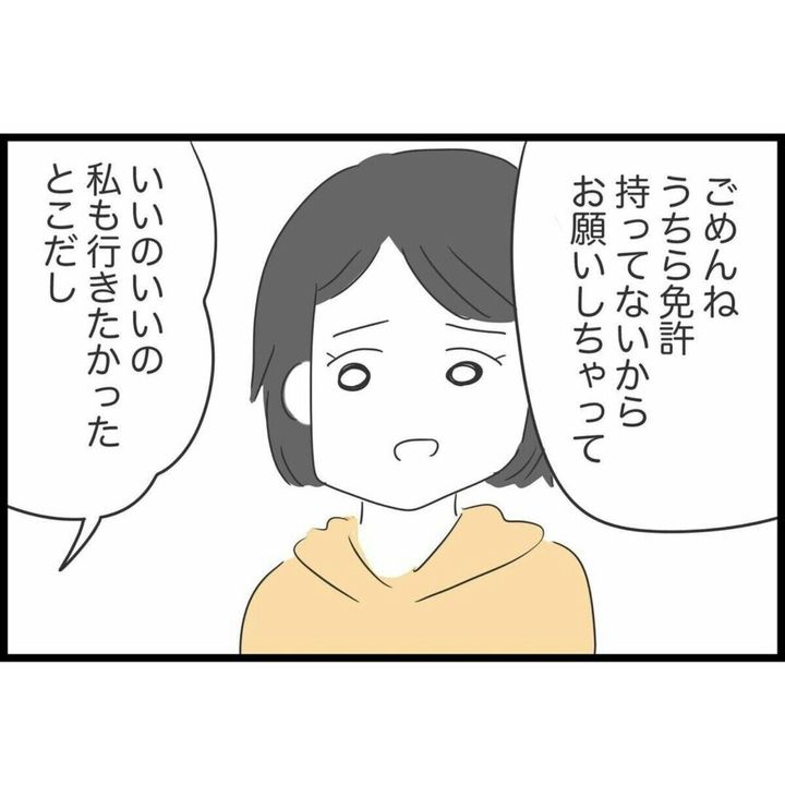 主人公・すみれは友人との旅行でいつも運転手を引き受けています。運転も車の準備も大変ですが、友人たちは車内で寝て過ごし、ガソリン代も折半です。なんとなくモヤモヤすることはあるものの、その場の雰囲気を悪くするのがイヤで、すみれは何も言わずにいました。