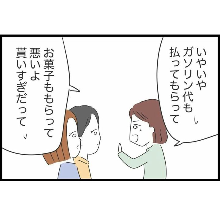 旅行の帰り道、ガソリンスタンドへ寄ると同僚は「うちらで払うから」と言い、手土産までくれました。想像もしていなかった言葉にすみれは戸惑います。「運転してくれただけで十分」という同僚の言葉は本当にその通りだなと思います。