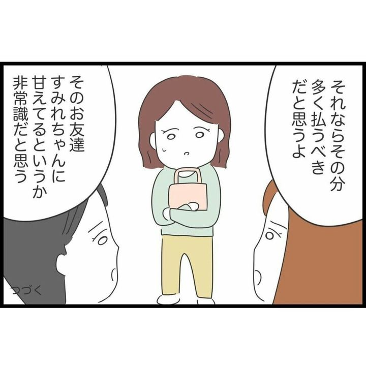 「もらいすぎだよ」と言うすみれに対し、同僚は「普通でしょ」と言います。何もしてくれない友人たちとの旅行しか知らないすみれにとっては同僚の気づかいや優しさ、何もかもが新鮮だったでしょうね。友人との旅行の話をすると同僚は非常識だと言い、かなり驚いた様子です。