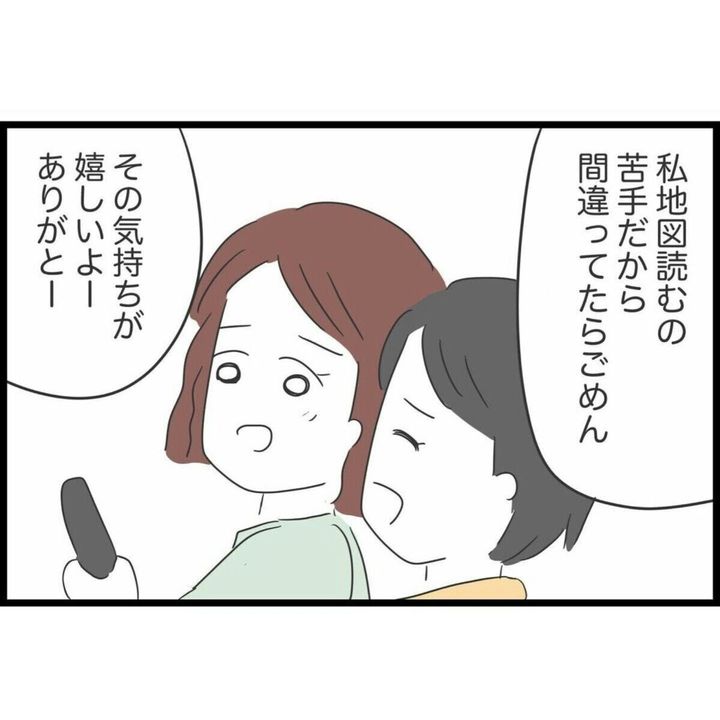 友人たちと旅行へ行った数週間後、同僚と旅行をすることになったすみれ。同僚たちは車へ乗るなり感謝を伝え、自分で調べてきた目的地までの道のりを出してきます。地図を見るよと言ってくれたり、音楽もすみれが好きなものを流してと控えめながらもしっかりとサポートをしてくれたのでした。