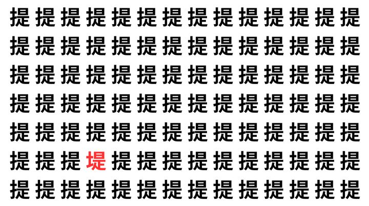 たくさんの「提」の中に、よく似た別の漢字が1文字だけ隠れています。