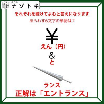 読み方がわかったら上から順番に読んでみましょう。すると正解になります。正解は「円」「と」「ランス」、というわけで「エントランス」でした。
