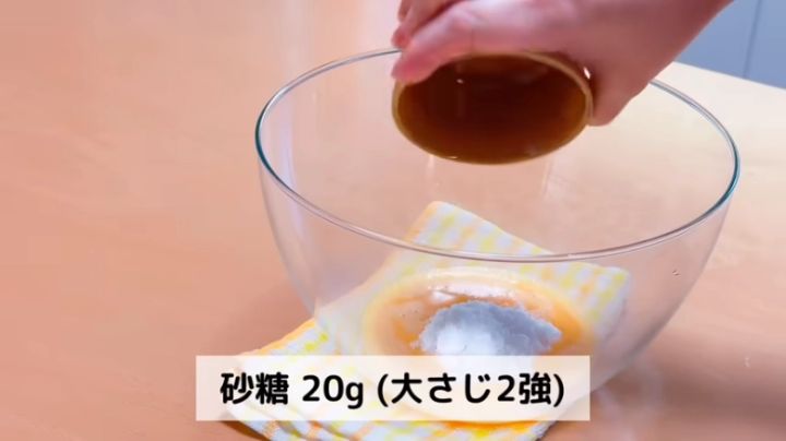 ② ①のボウルに砂糖を加えて混ぜる
