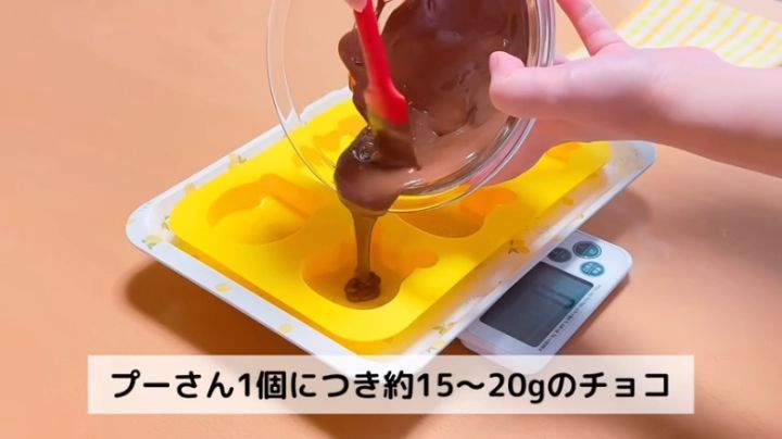 プーさんひとつにつき15~20gのチョコを使います。