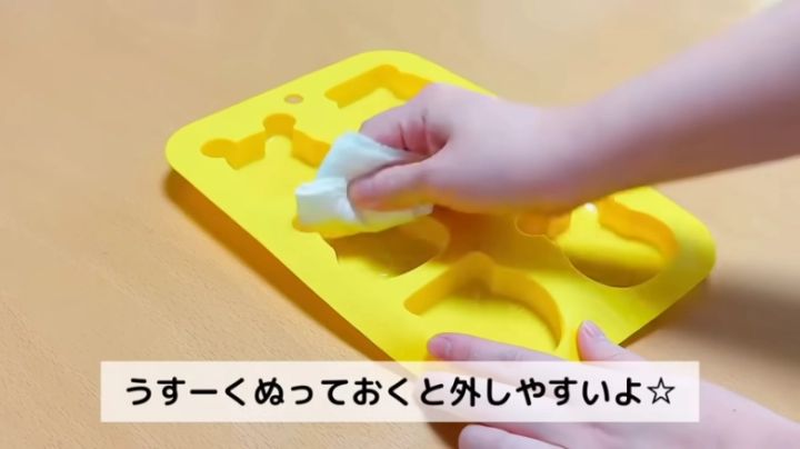 型にキッチンペーパーで油を薄く塗っておきます。