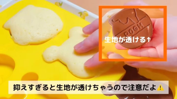 型をトントンすれば耳の部分まで生地が流れてくれますよ。生地を入れすぎたら少ないところに入れたりして量を調整しましょう!
