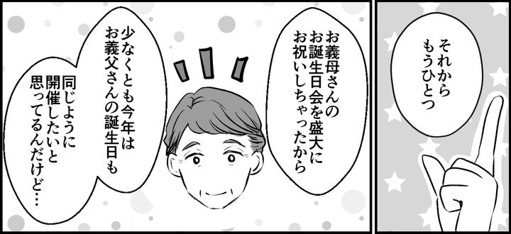 次に、義父の誕生日会は義弟夫婦と共同開催にしたいと提案。