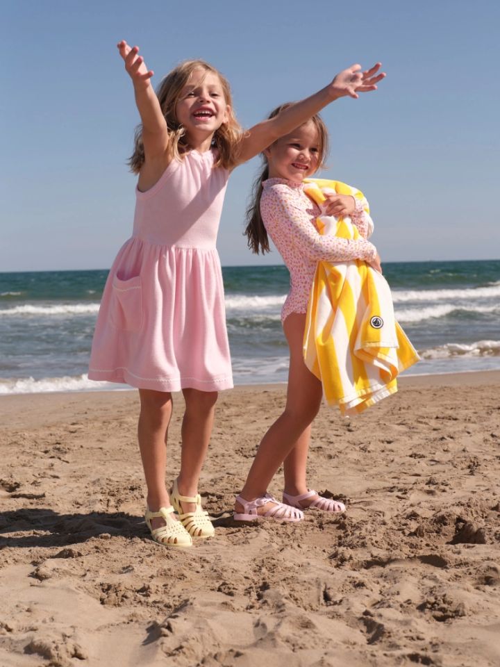 女の子が大好きなピンクや刺繍、フリルを使ったワンピースや小花柄のスイムウエア、カラフルなビーチタオルと夏に活躍する軽快なアイテムが次々と登場します。風になびく裾やフリルが涼しげで、自然と笑顔があふれます♡