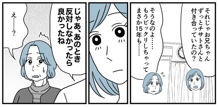 あまりに驚いてしまって言葉も出ませんでした。タツヤとチサトさんはあれからずっと付き合っていたと言うのです。もはや結婚に反対する理由はないので、私たち夫婦も受け入れました。話をするとナミもビックリしていました。