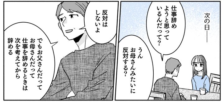 3. <辞めたい理由が幼稚すぎ…>辞めることを止めないの?旦那のアドバイスに娘は上機嫌【まんが】