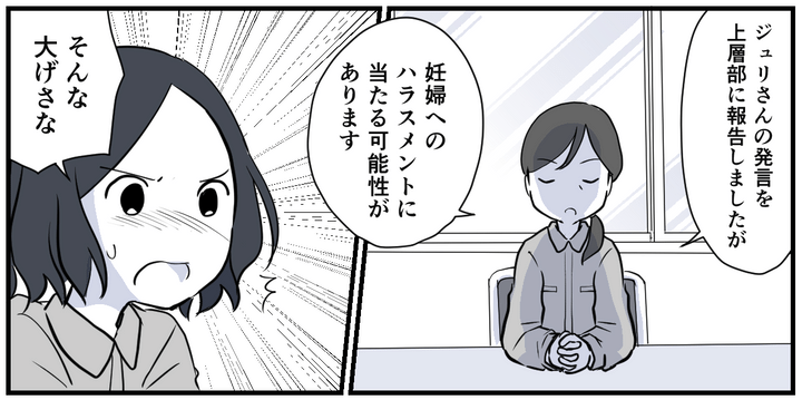 キヨカさんは上層部にまで話を通してくれていて、その結果、ジュリさんの発言はマタニティハラスメントに該当するのではないかという話でした。