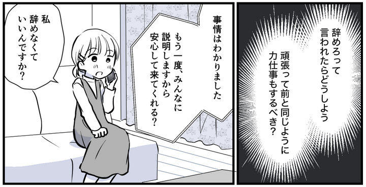私は自分が辞めたくない気持ちと、ジュリさんが言っていることも理解できるという気持ちで、どうすればいいかわからずキヨカさんに相談をしました。