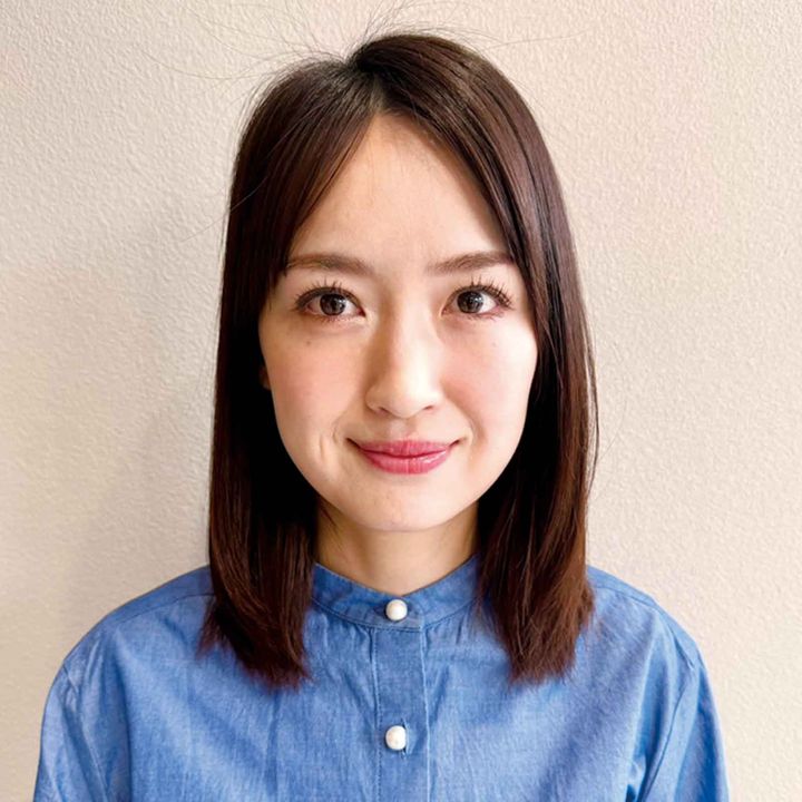 伸びかけミディアムが、バランスよくフェイスレイヤーを入れたスタイルに。耳前から幅広気味にレイヤーを入れ顔周りに軽さと動きを出すことで小顔見え。32mmのコテで毛先を軽く外ハネさせたカジュアルスタイリングも垢抜けます。