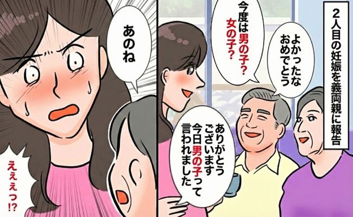 第1子となる男の子を妊娠したとき、義父母は「一人目は男の子が一番よね」ととても喜んでくれました。それから時は過ぎ、第2を妊娠した私。義父母に性別を報告すると耳を疑うような言葉が返ってきたのです……!