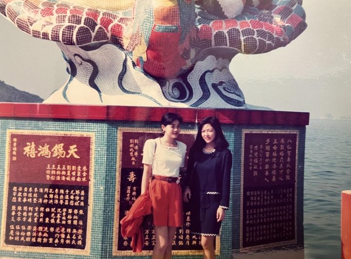 「20代の頃に香港に行ったときの写真です。服装や髪形が時代ですね」(永村さん)、「国内とか近場の海外とか、また旅行には行きたいね」(田中さん)