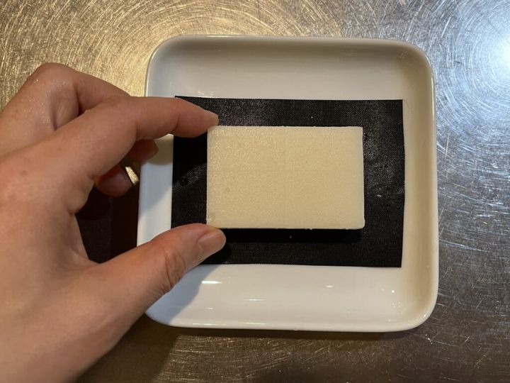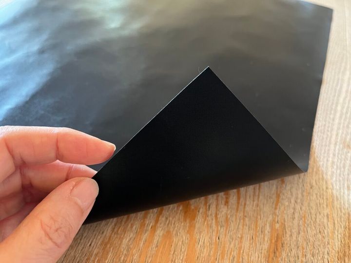 「くりかえし使えるクッキングシート」は、約33×33㎝の正方形。素材はポリテトラフルオロエチレン(いわゆるフッ素樹脂)とグラスファイバーです。