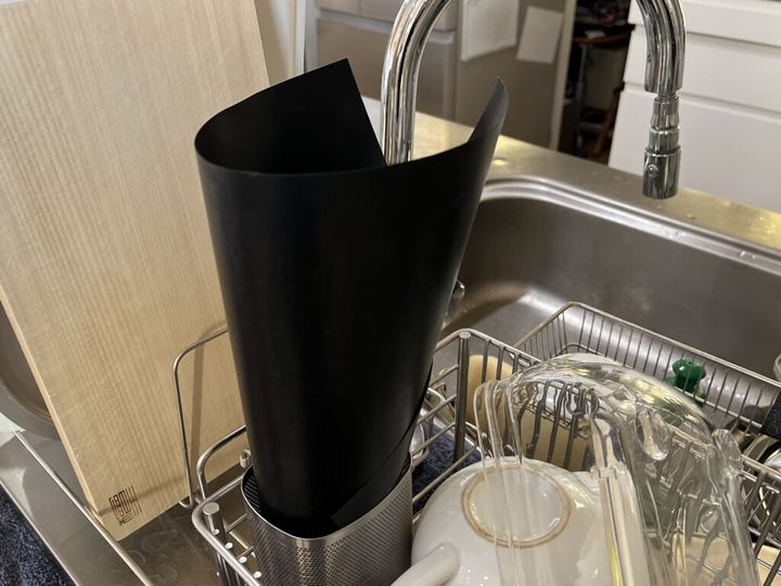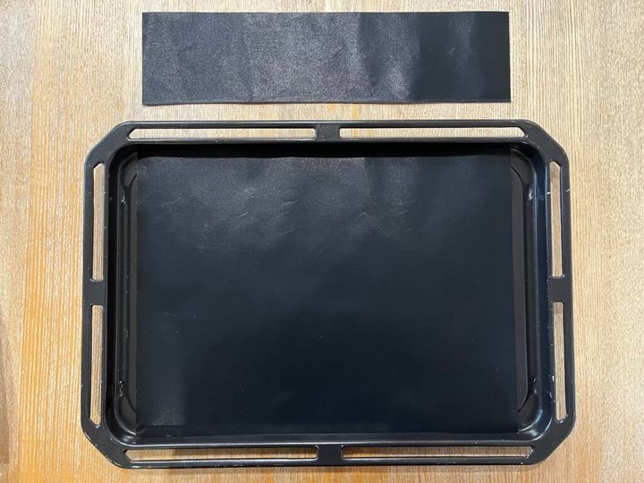 天板のサイズに合わせてカットして準備完了!(天板も黒なので見えにくいですが、ちゃんと敷いてあります)