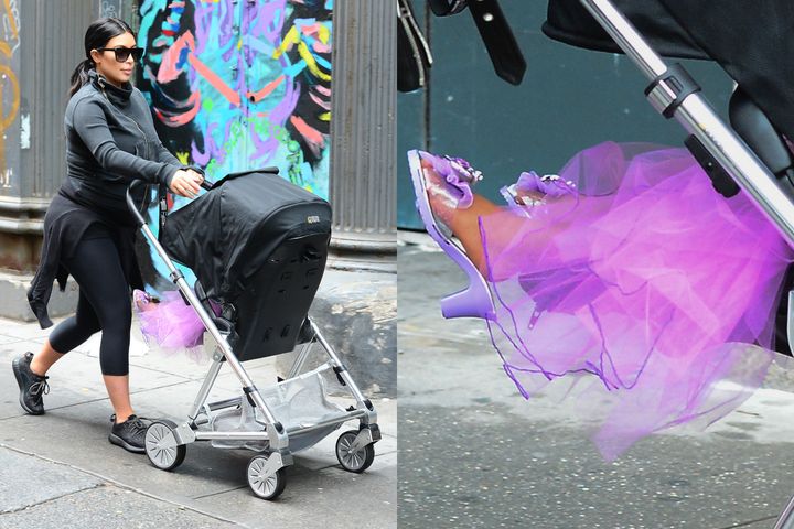 ママが押すベビーカーに乗ってNYの街を散歩中のノース。バギーから覗く、その足元に注目!