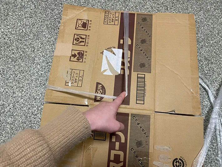 ダンボールの準備ができたら、ビニール紐をカットしましょう。