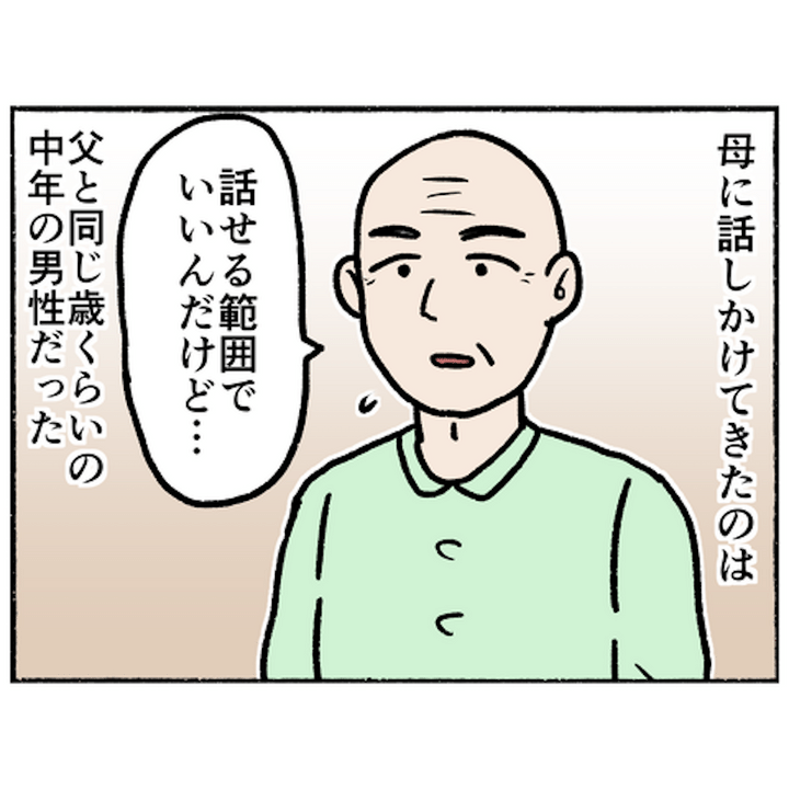 母に話しかけてきた中年男性は、男女の考え方の違いや、「その時旦那さんは、母に対してこう思ってたんじゃないかな?」というアドバイス的なのをしてくれたそうです。