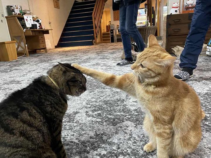 ネコ達がたわむれているという微笑ましいその光景。 とある旅館の看板猫が見せた、とてもやさしいツッコミが話題になっています!