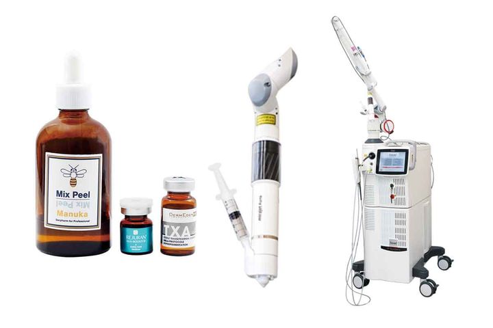 ダウンタイムなく噴射導入によって有効成分を入れ込み肌を育てるミラジェット Forte。患者さんの状態によって導入成分を提案。