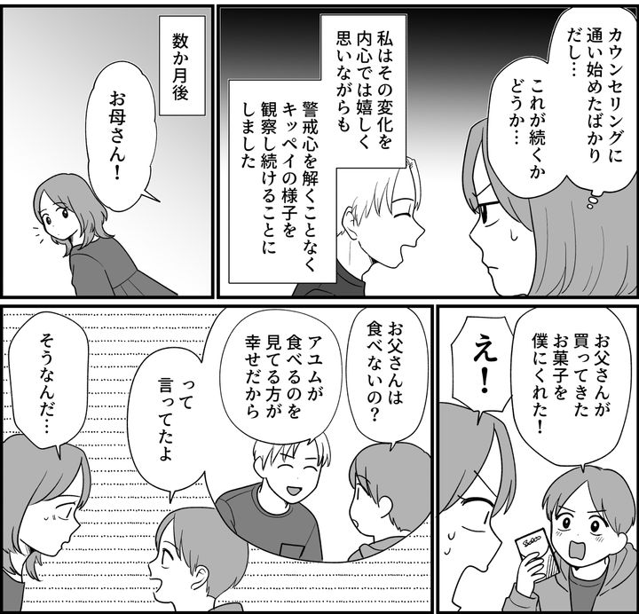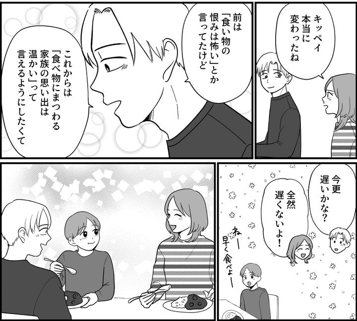 カウンセリングに通いだして1年。キッペイの醜い欲は影を潜め、食卓では真っ先に家族に配膳するようになりました。