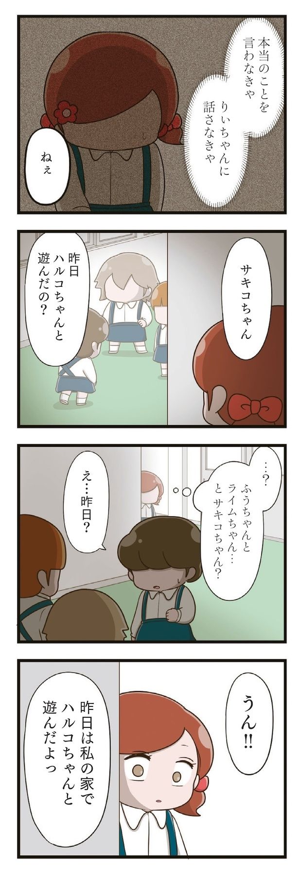 「お姉ちゃん学校でいじめられているんだって」息子の一言がきっかけで、母親は娘・ハルコの言動に違和感を抱くようになる。その結果分かったのは、ハルコが4年間、ひとりでいじめに耐えて隠し続けていたこと。いじめの本当の加害者は、被害者は誰? いじめと向き合う家族が希望を取り戻すまでの物語『家族全員でいじめと戦うということ。』を再連載でお届けします。いじめの原因になった同級生を描く新作『「お母さんの言うとおり」にしてきたのに 家族全員でいじめと戦うということ。 サキコの場合』も好評発売中です。