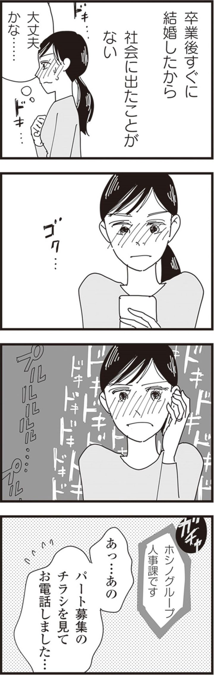 「このままではいけない」と、パート募集のチラシを手に電話をかける