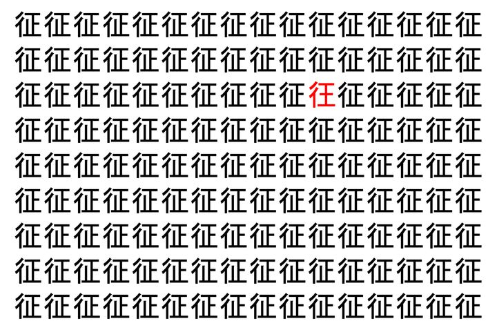 画像の中には、「征」という漢字が縦に9行、横に16個並んでいます。 全部で144個となりますが・・・、そのうち1つは「異なる漢字」となってますよ!!