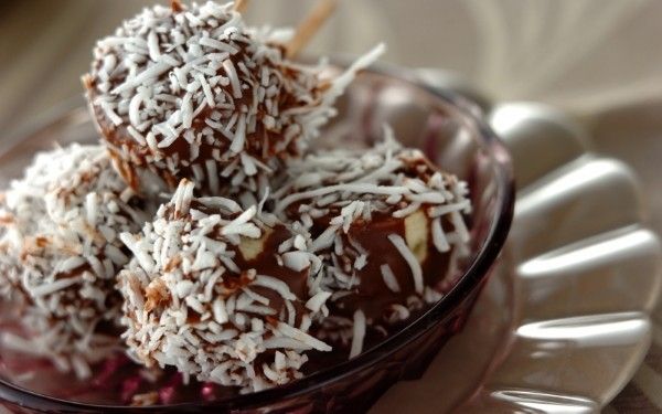 市販の鈴カステラをチョコレート&ココナッツファインでデコレーションします。リッチな味わいで、子どもから大人まで大満足。チョコレートはビターがイチオシです。ギフト用にはスティックに刺してロリポップにしても◎。