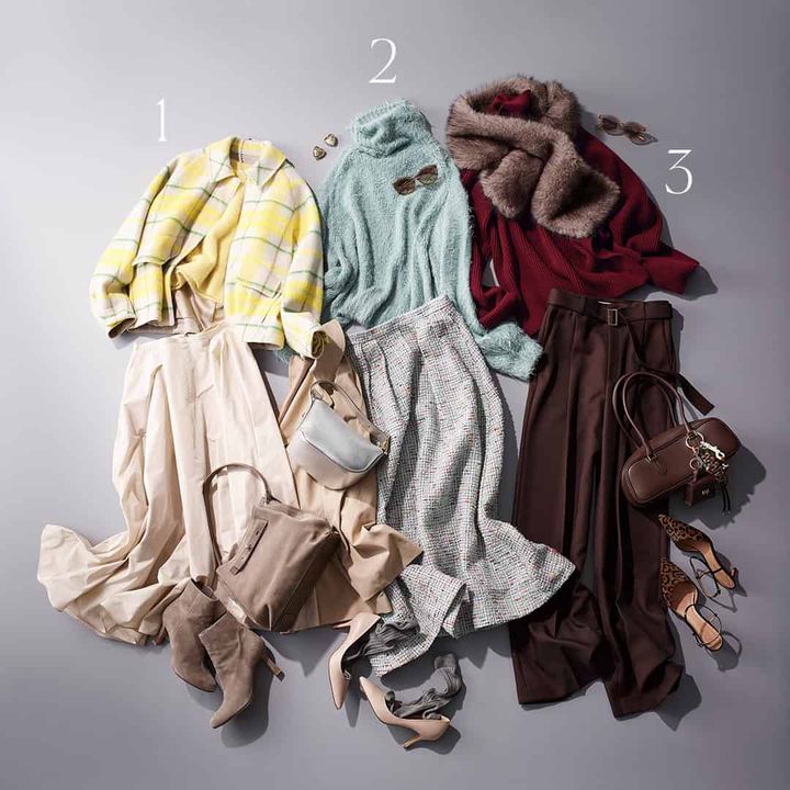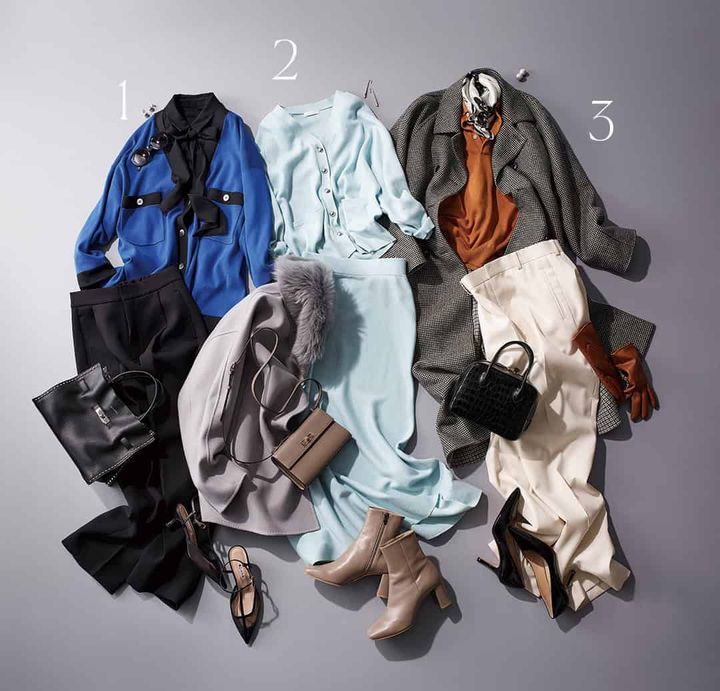 3. 40代に似合って洒落る【キレイ色ニット】見本。きちんと見えて華やぐ正解コーデ
