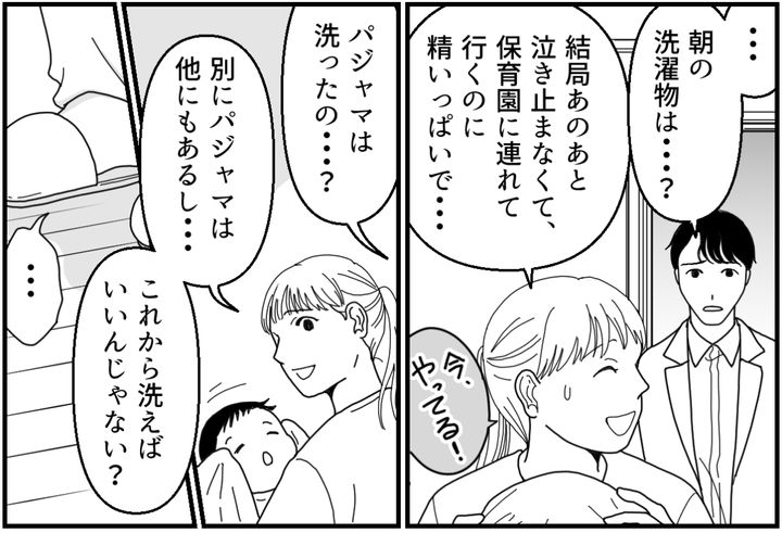 <俺の家事は完ペキ…?>負担は少ないはずなのに!「余裕なかった」言い訳ばかりの妻【まんが】